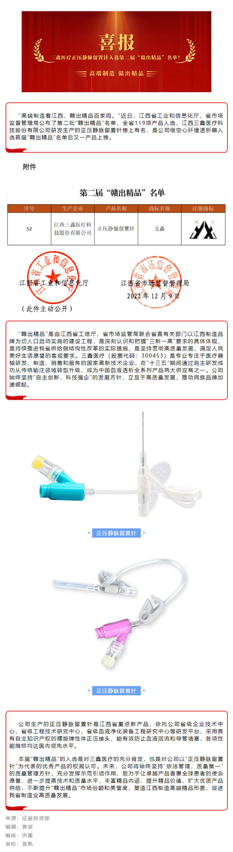 喜讯 | 球盟会医疗正压静脉留置针入选第二届“赣出精品”名单!