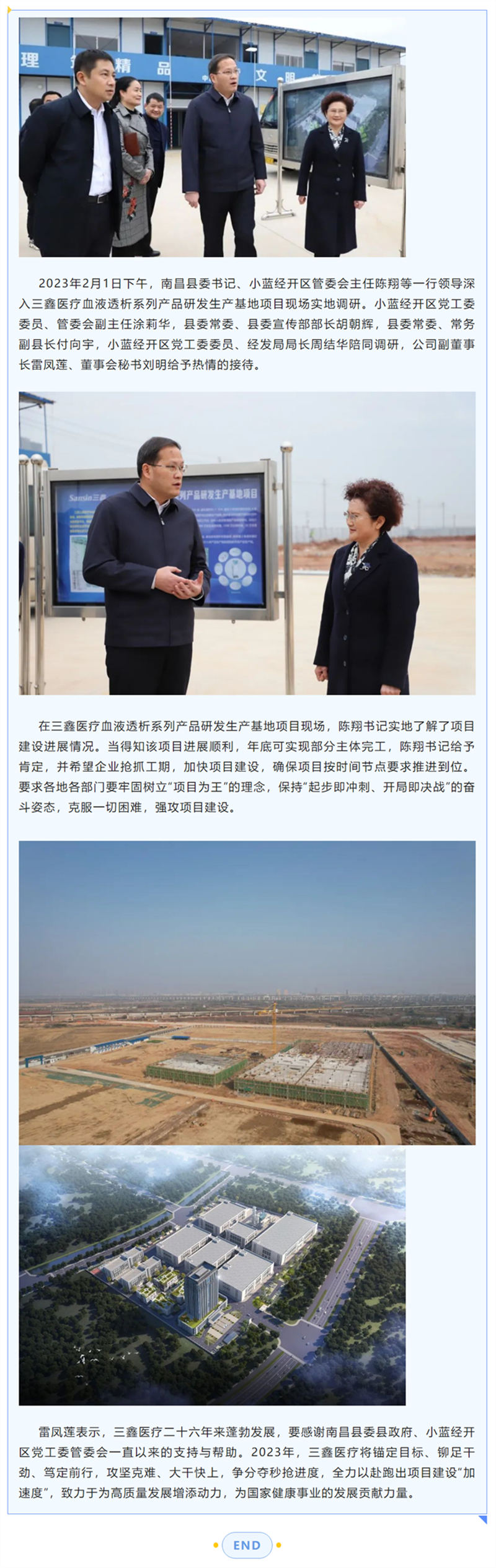 南昌县委书记陈翔莅临球盟会医疗血液透析系列产品研发生产基地项目实地调研